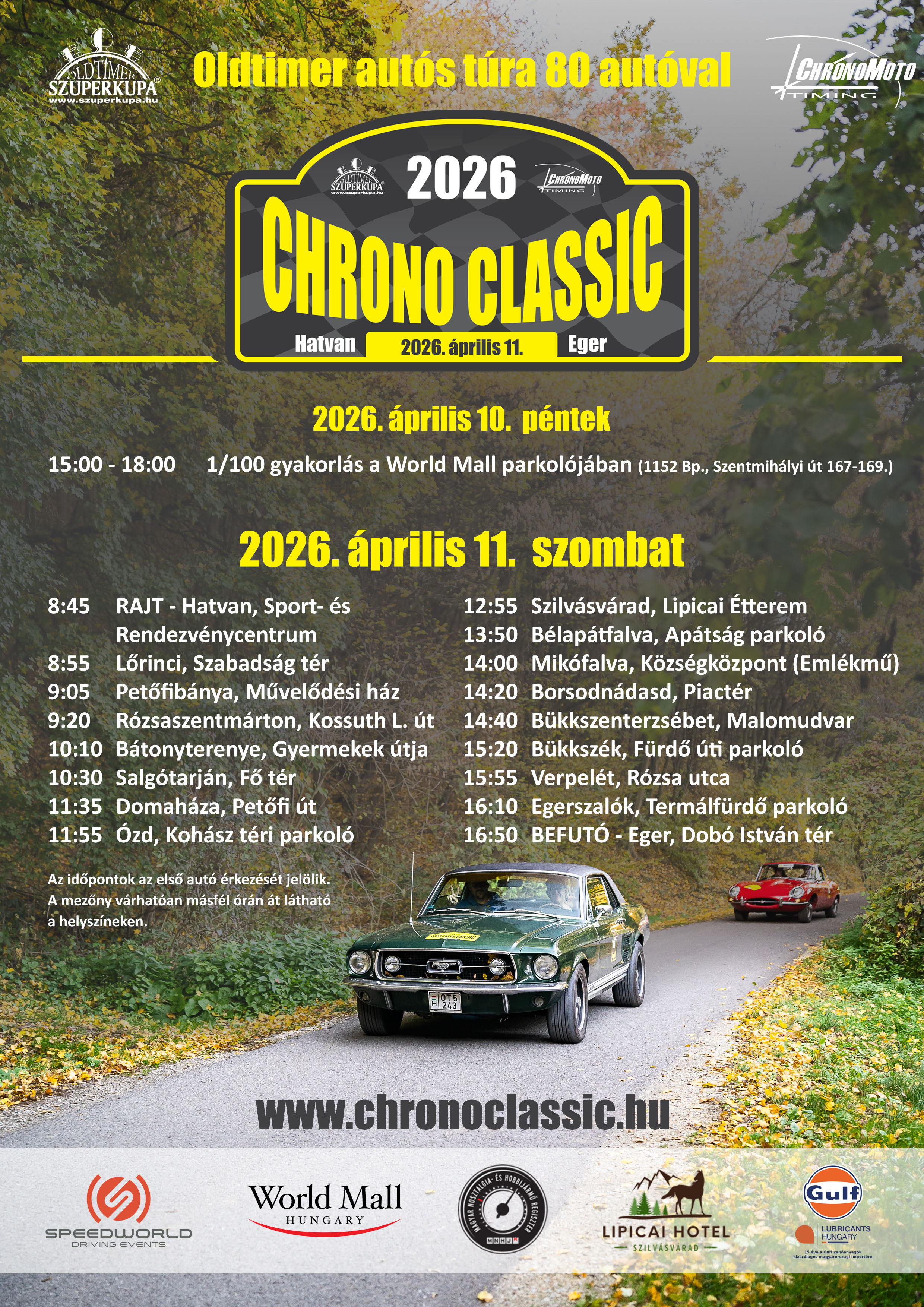 Kedves Érdeklődő, Veteránautó-rajongó! Közeledik a túra napja, a lent található plakáton olvashatod a látványos nézői pontok listáját. A plakát rákattintva megnyitható és letölthető nagy felbontásban. Várunk mindenkit szeretettel! | |||||||||||||||